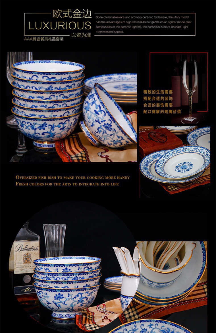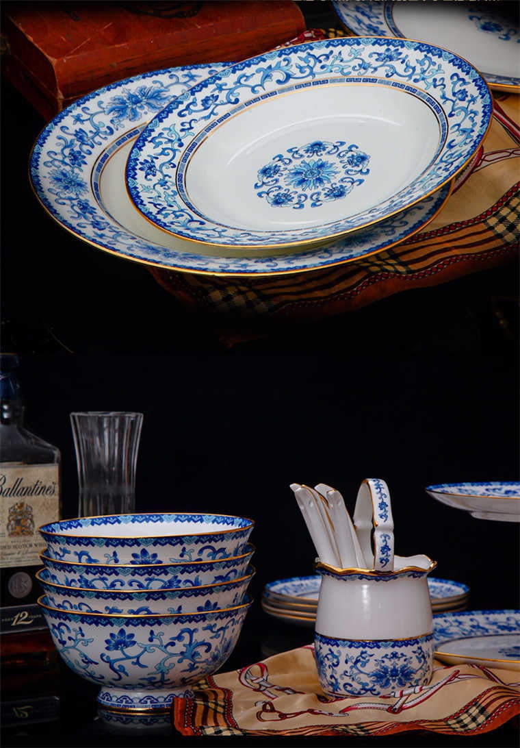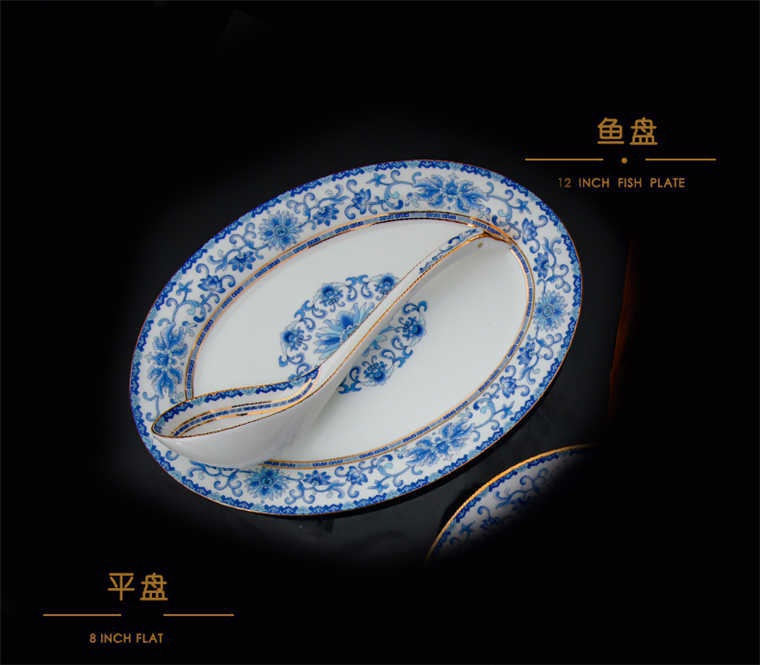 90頭青花餐具,一個宮廷湯煲,一個十二寸魚盤,一個10寸平盤,一個10寸月光盤,一個9寸平盤,一個9寸湯盤,四個8寸平盤,四個8寸湯盤,四個6寸高腳面碗,十個4.5寸飯碗,十個4寸湯碗,十個7.5寸淺盤,十個4寸小蝶,十個筷架,十個天鵝小勺,一個天鵝大勺,一個花籃,兩個胡椒瓶,一個牙簽筒,一個大煙灰缸,一個雙層水果盤,一個美鵝,一個毛巾碟,兩個燉盅。