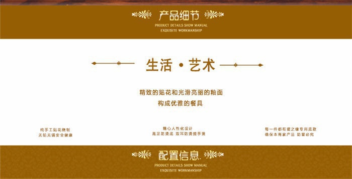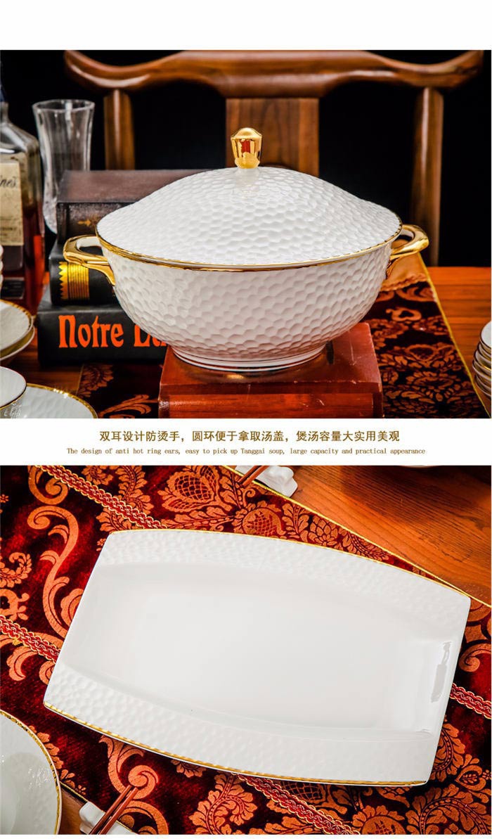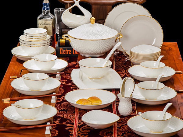 60頭水立方,一個(gè)湯煲,一個(gè)魚(yú)盤(pán),一個(gè)十寸圓盤(pán),一個(gè)飯勺,一個(gè)花籃,一個(gè)牙簽筒,四個(gè)面碗,十個(gè)4.5寸飯碗,十個(gè)三角骨碟,十個(gè)八寸盤(pán),十個(gè)調(diào)羹,十個(gè)筷子架。