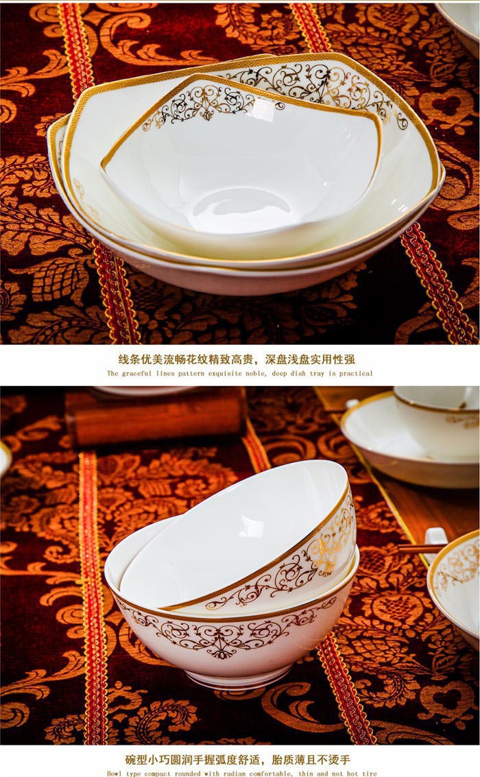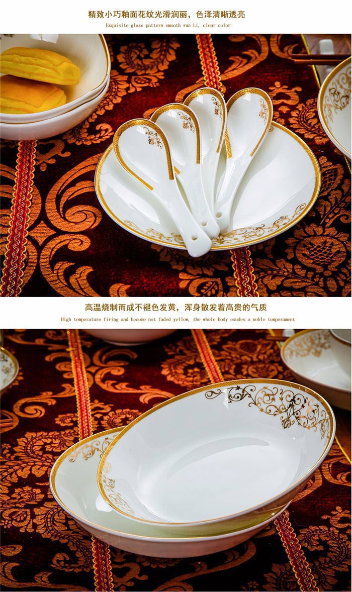 60頭相思,一個(gè)湯煲,一個(gè)魚盤,一個(gè)10寸大圓盤,一個(gè)飯勺,兩個(gè)沙拉碟,四個(gè)面碗,十個(gè)4.5寸飯碗,十個(gè)5寸骨碟,八個(gè)8寸圓盤,兩個(gè)8寸方盤,十個(gè)調(diào)羹,十個(gè)筷子架。