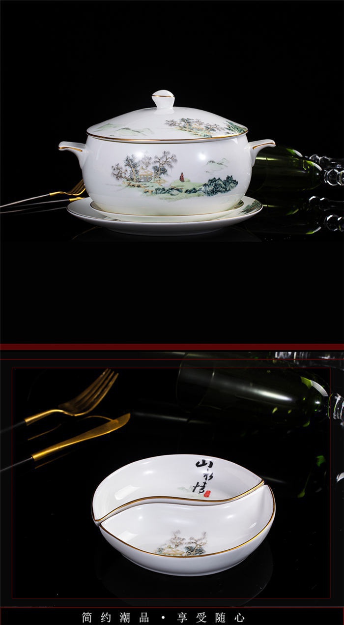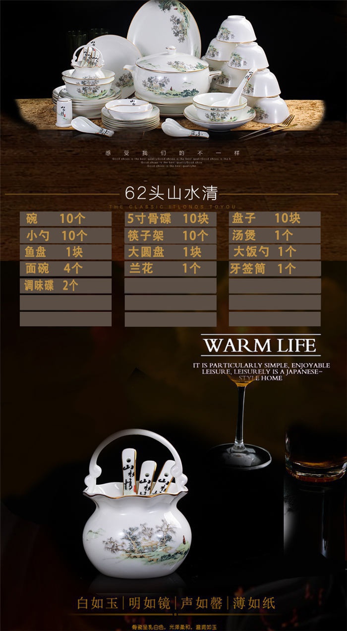 碗十個(gè),5寸骨碟十塊,盤子十塊,小勺十個(gè),筷子架十個(gè),湯煲一個(gè),魚(yú)盤一塊,大圓盤一塊,大飯勺一個(gè),面碗四個(gè),蘭花一個(gè),牙簽筒一個(gè),調(diào)味碟二個(gè)。