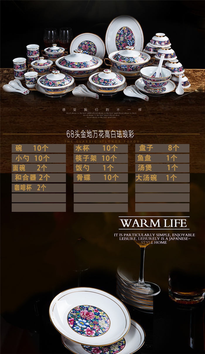碗十個(gè),水杯十個(gè),盤子八個(gè),小勺十個(gè),筷子架十個(gè),魚盤一個(gè),面碗二個(gè),飯勺一個(gè),湯煲一個(gè),和合器二個(gè),骨碟十個(gè),大湯碗一個(gè),咖啡杯二個(gè)。